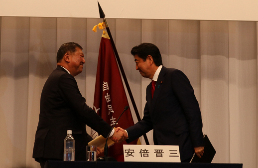 島根県連から青年局は坪倉誠(県連青年局次長)と奈良嘉晃(学生部代表)、女性局は糸川純子(県連女性副局長)と波多野瑠璃子(同)が出席し、自民党総裁選挙の安倍晋三候補と石破茂候補の所見発表演説に聞き入りました。