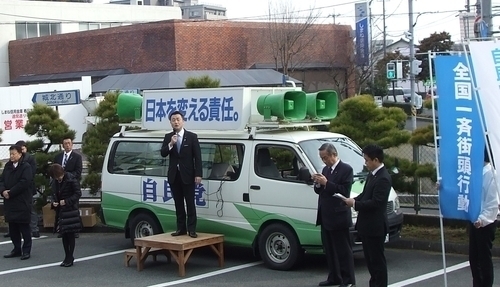 「竹島の日」の2月22日、松江市春日町のカナツ技建工業前にて『自民党街頭演説会』を開催いたしました。